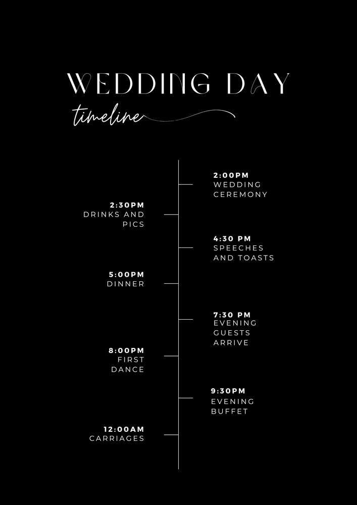 The ceremony will commence at 2pm. We ask that all guests arrive before 1.45pm to allow time to be seated in the orangery. The bar in the conservatory will be open before the ceremony so come along and grab a drink!